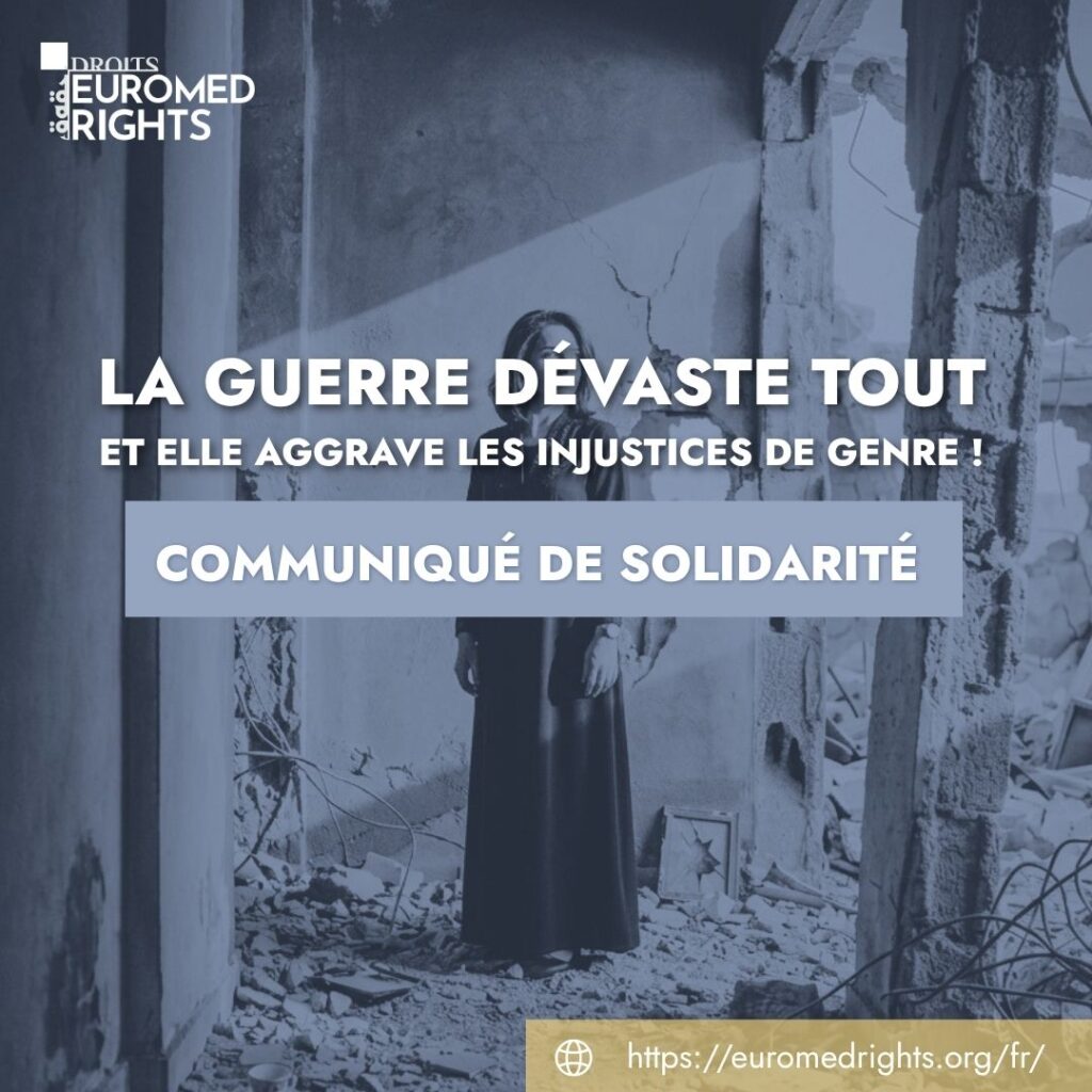 Nous, membres du Groupe de travail régional Droits des femmes, Justice de genre et Libertés d’EuroMed Droits exprimons notre profonde préoccupation face aux impacts genré de ces guerres. Ceux-ci constituent une grave régression dans la protection des droits fondamentaux des femmes et des filles à la vie, à la santé, à la dignité et à la sécurité dans la région euro-méditerranéenne.